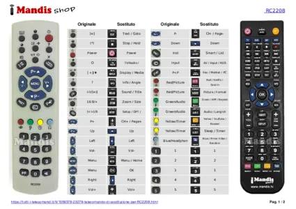 Questo telecomando sostituisce completamente il tuo RC2208 e offre tutte le funzioni dell'originale.