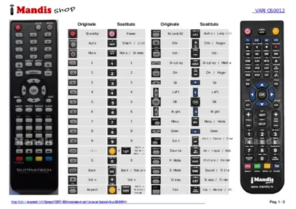Di seguito, vi mostreremo la corrispondenza tra ciascun pulsante del telecomando originale e il pulsante che svolge la stessa funzione sul telecomando di sostituzione. In alcuni casi, potrebbe essere necessario premere il tasto SHIFT prima di premere un altro pulsante per eseguire determinate azioni. Queste funzioni aggiuntive sono spesso poco utilizzate e sono incluse per facilitare la comprensione del telecomando di sostituzione, o perché il telecomando originale ha più pulsanti rispetto al suo equivalente.