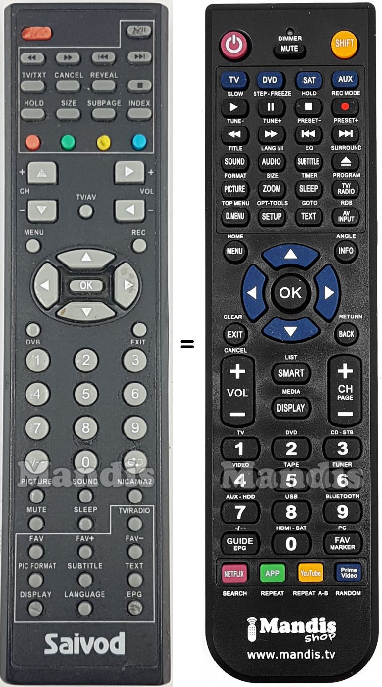 Di seguito, vi mostreremo la corrispondenza tra ciascun pulsante del telecomando originale e il pulsante che svolge la stessa funzione sul telecomando di sostituzione. In alcuni casi, potrebbe essere necessario premere il tasto SHIFT prima di premere un altro pulsante per eseguire determinate azioni. Queste funzioni aggiuntive sono spesso poco utilizzate e sono incluse per facilitare la comprensione del telecomando di sostituzione, o perché il telecomando originale ha più pulsanti rispetto al suo equivalente.