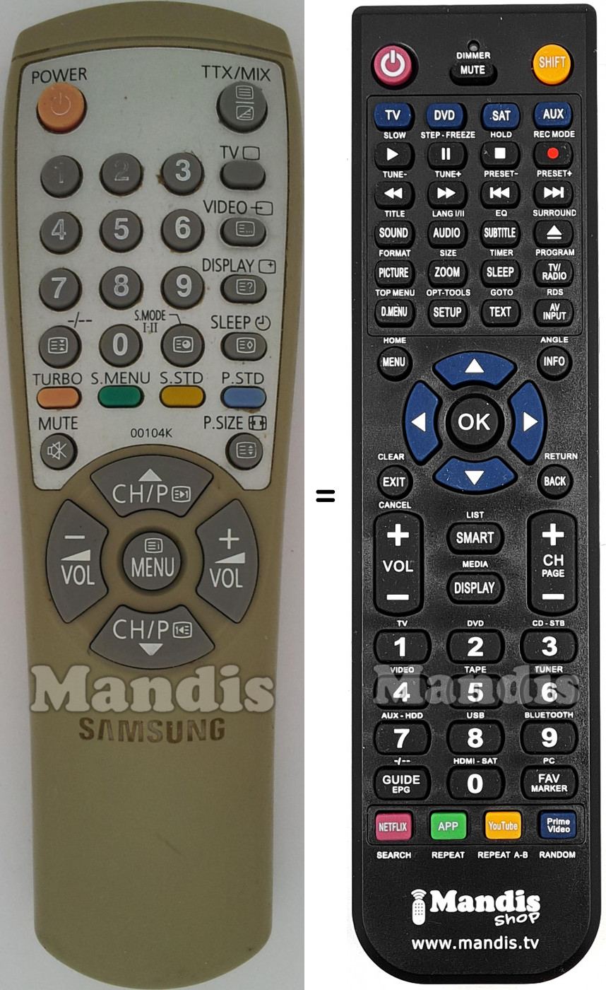 Questo telecomando sostituisce completamente il tuo TM59 (AA5900104K) e offre tutte le funzioni dell'originale.