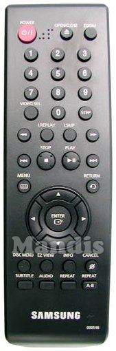 Power, Open / Close, Zoom, 1, 2, 3, 4, 5, 6, 7, 8, 9, 0, Video Sel., Step, <<, I.Replay, I.Skip, >>, I<<, Stop, Play / Pause, >>I, Menu, Return, Up, Down, Right, Left, Enter, Disc Menu, EZ View, Info, Cancel, Subtitle, Audio, Repeat, Repeat A-B