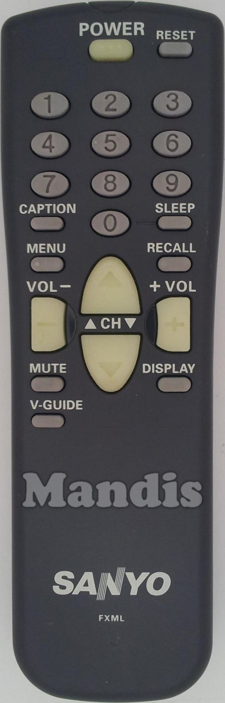 Telecomando originale FXML che serve per televisori della marca Sanyo. Si tratta di un modello originale di telecomando.