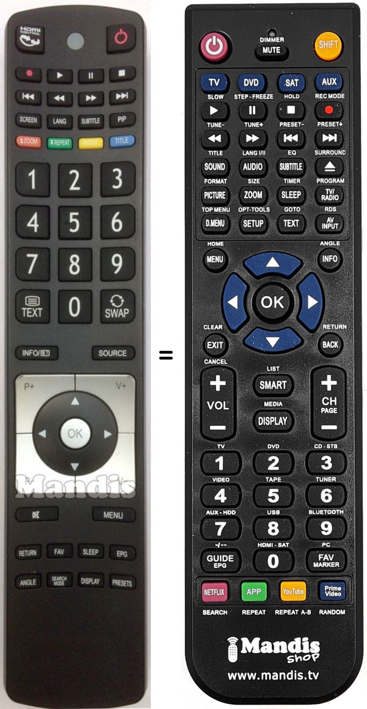 Telecomando che sostituisce l’originale in tutte le sue funzioni. Non si tratta di un telecomando universale ma di un telecomando che sostituisce l’originale. Riceverà il telecomando completamente pronto per il suo funzionamento, deve solo mettere le pile. Non è necessario programmarlo. Le diamo garanzia totale che il telecomando compirà le stesse funzioni del telecomando originale.