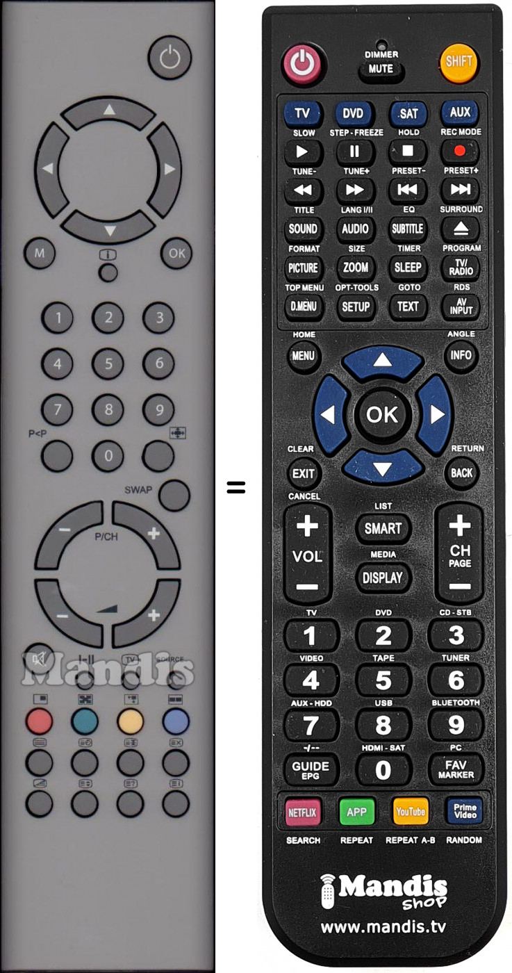 Telecomando che sostituisce l’originale in tutte le sue funzioni.
