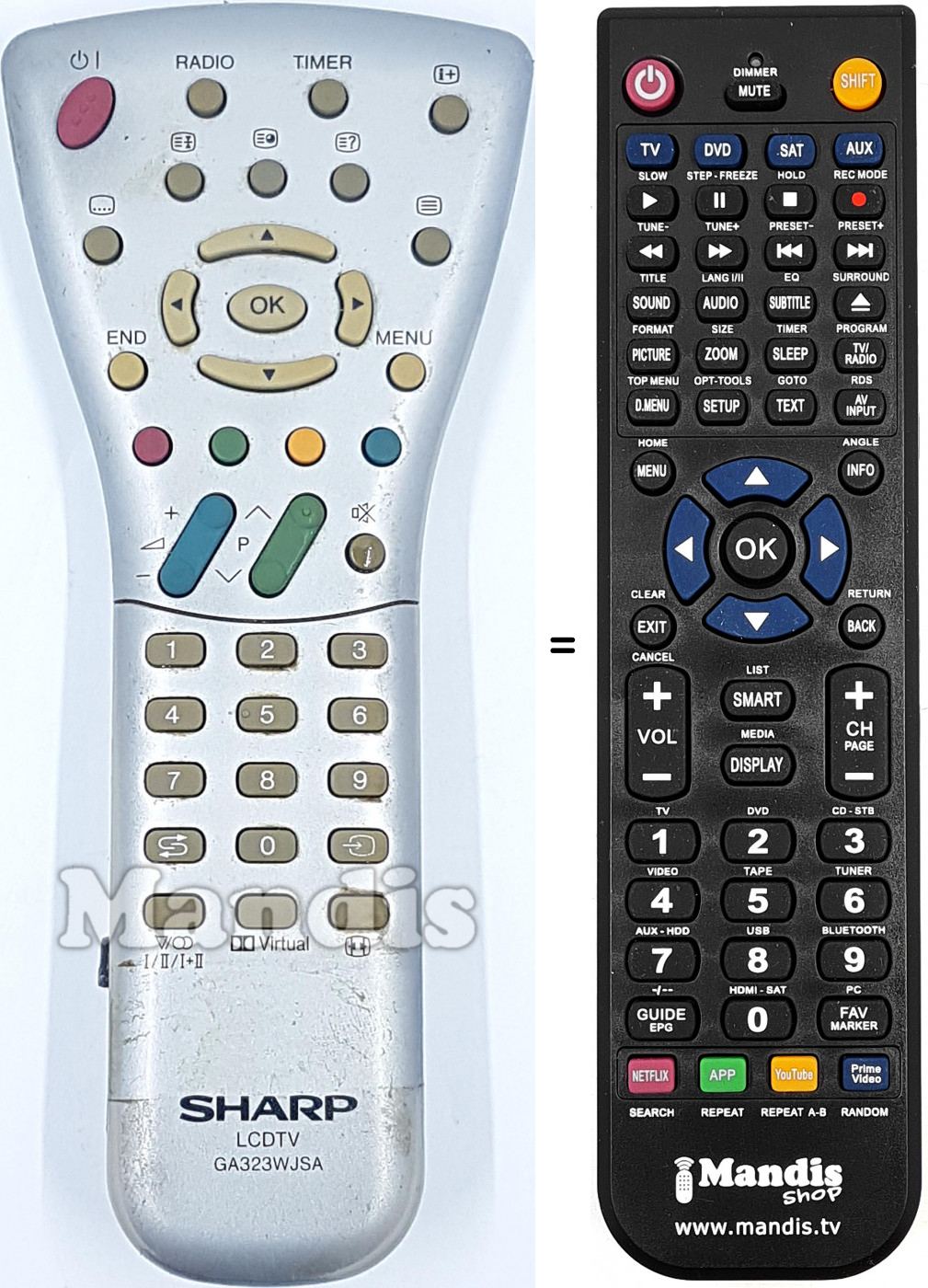 Sono molto soddisfatta,il venditore molto disponibile mi ha consigliato telecomando giusto per la mia TV Sharp. Ho acquistato da altri venditori ma non funzionava nessun telecomando. Questo è l' unico che funziona. La spedizione e stata veloce. Consigliato vivamente.