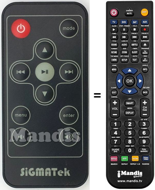 Di seguito, vi mostreremo la corrispondenza tra ciascun pulsante del telecomando originale e il pulsante che svolge la stessa funzione sul telecomando di sostituzione. In alcuni casi, potrebbe essere necessario premere il tasto SHIFT prima di premere un altro pulsante per eseguire determinate azioni. Queste funzioni aggiuntive sono spesso poco utilizzate e sono incluse per facilitare la comprensione del telecomando di sostituzione, o perché il telecomando originale ha più pulsanti rispetto al suo equivalente.
