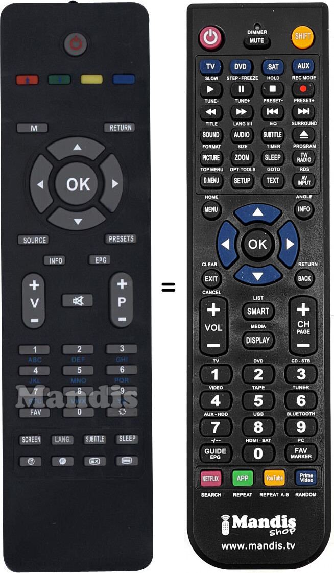 Telecomando che sostituisce l’originale LCDTV22104 (20514712) in tutte le sue funzioni.