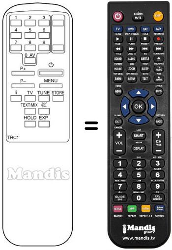 Telecomando che sostituisce l’originale TRC 1 in tutte le sue funzioni.