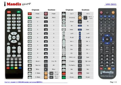 Di seguito, vi mostreremo la corrispondenza tra ciascun pulsante del telecomando originale e il pulsante che svolge la stessa funzione sul telecomando di sostituzione. In alcuni casi, potrebbe essere necessario premere il tasto SHIFT prima di premere un altro pulsante per eseguire determinate azioni. Queste funzioni aggiuntive sono spesso poco utilizzate e sono incluse per facilitare la comprensione del telecomando di sostituzione, o perché il telecomando originale ha più pulsanti rispetto al suo equivalente.