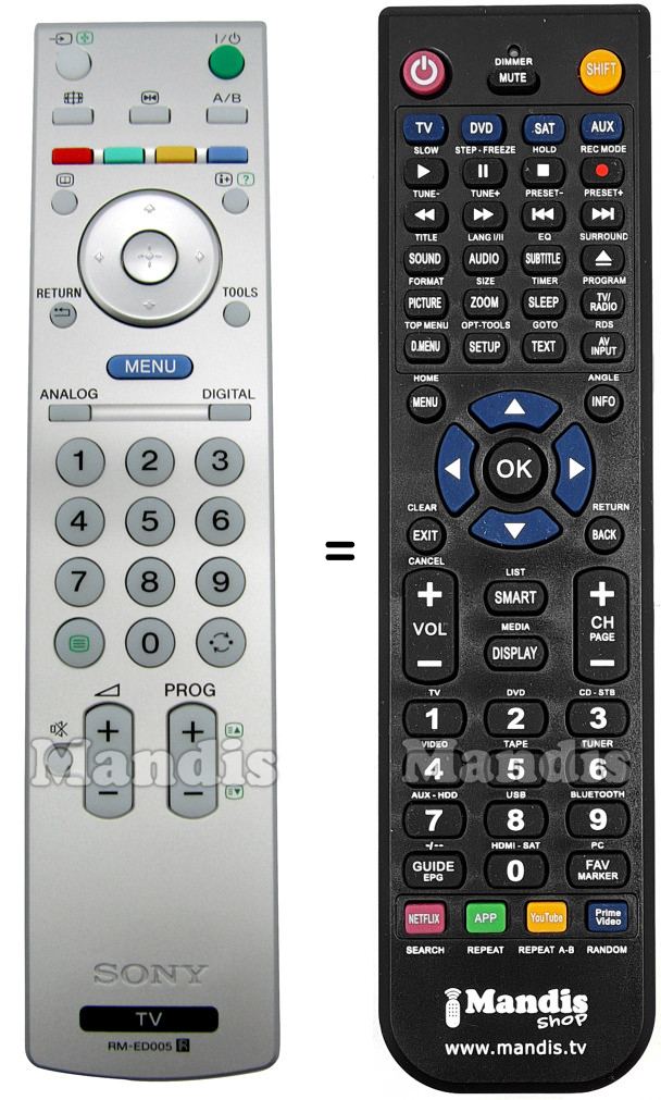 Questo telecomando sostituisce completamente il tuo RM-ED 005 (147968521) e offre tutte le funzioni dell'originale.
