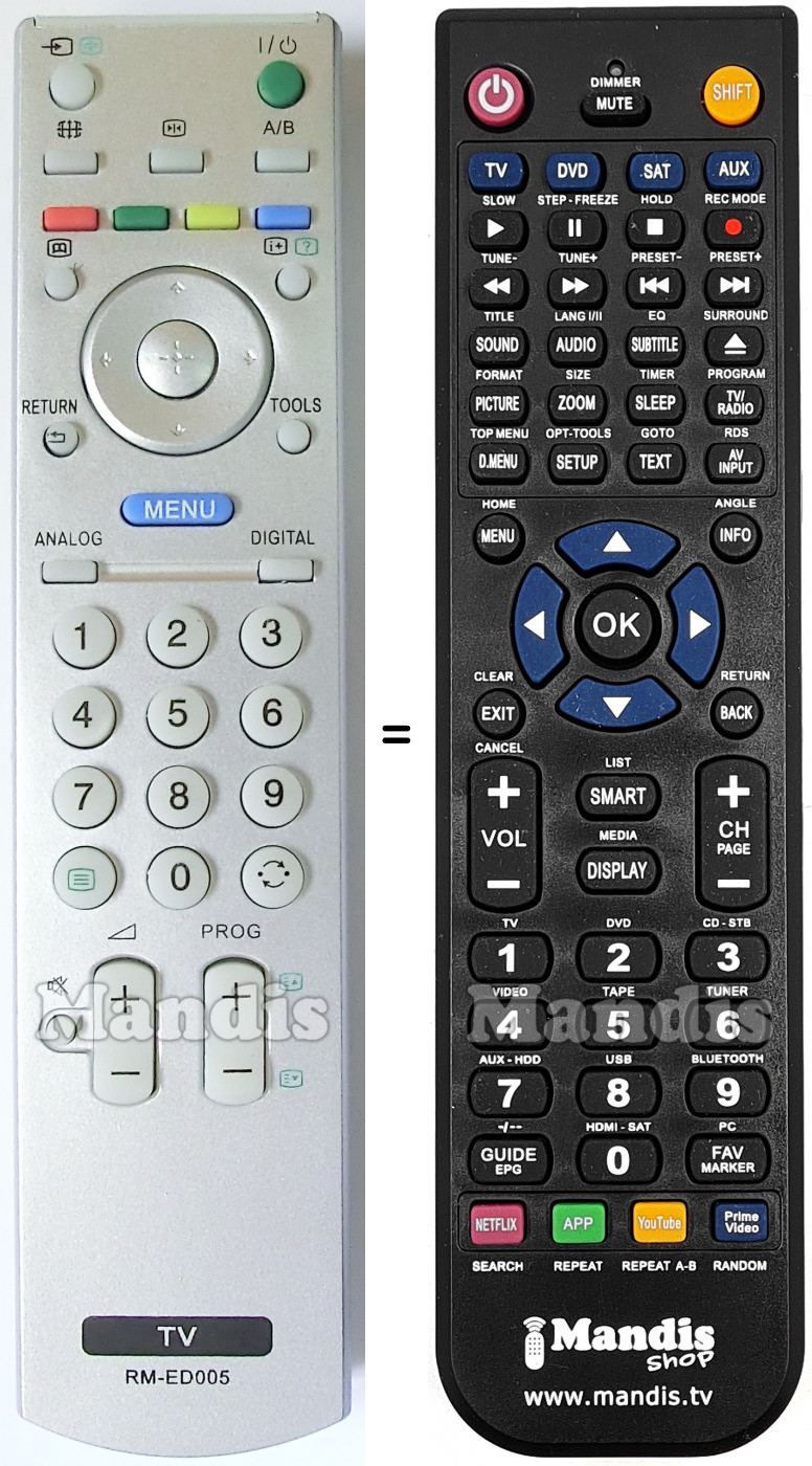 Questo telecomando sostituisce completamente il tuo RMED005 (MV-RMED005) e offre tutte le funzioni dell'originale.