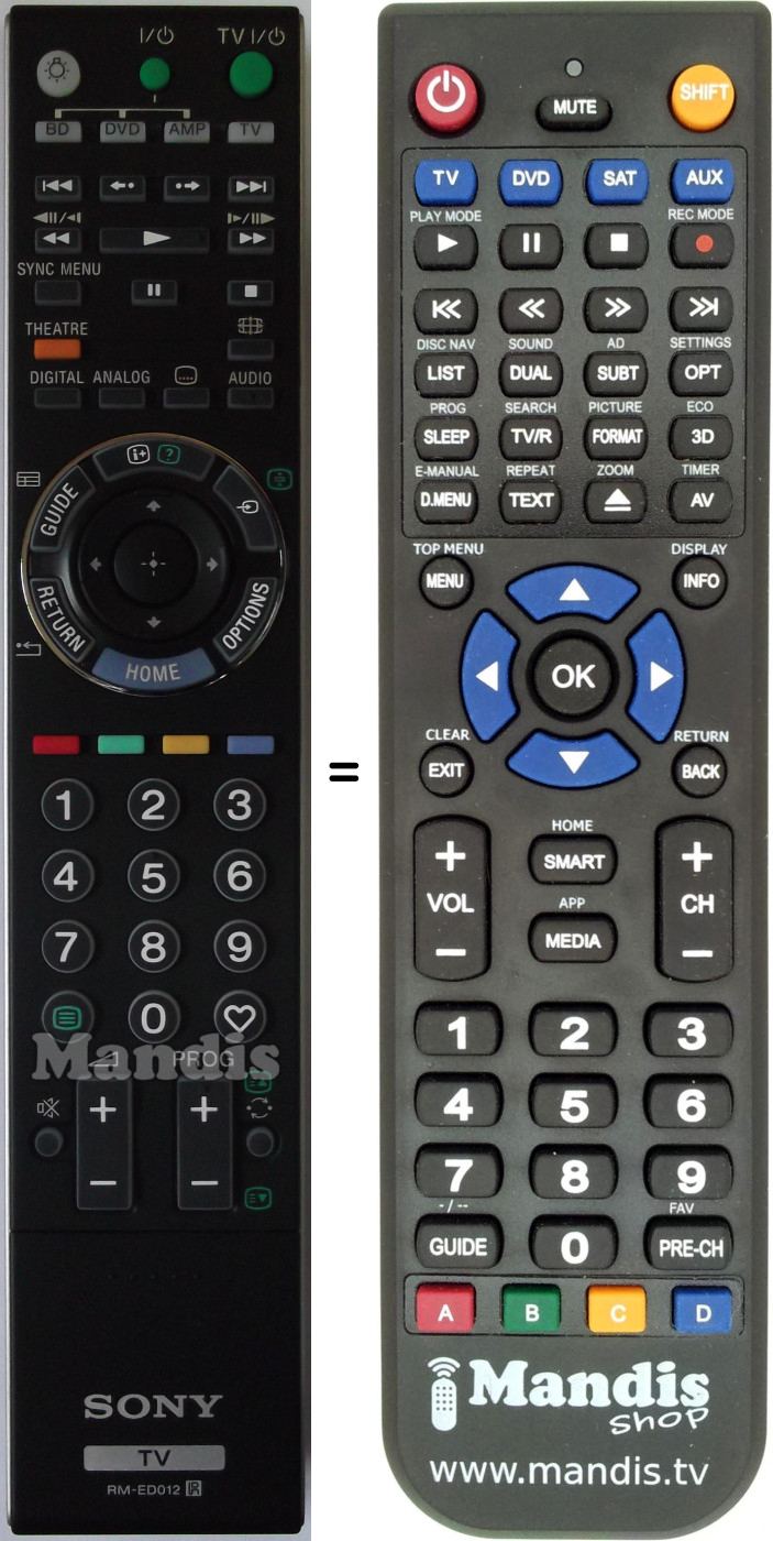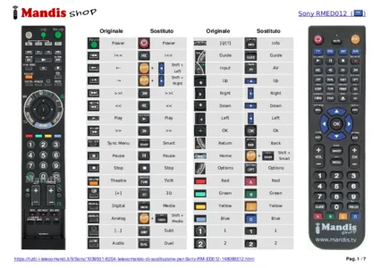Di seguito, vi mostreremo la corrispondenza tra ciascun pulsante del telecomando originale e il pulsante che svolge la stessa funzione sul telecomando di sostituzione. In alcuni casi, potrebbe essere necessario premere il tasto SHIFT prima di premere un altro pulsante per eseguire determinate azioni. Queste funzioni aggiuntive sono spesso poco utilizzate e sono incluse per facilitare la comprensione del telecomando di sostituzione, o perché il telecomando originale ha più pulsanti rispetto al suo equivalente.