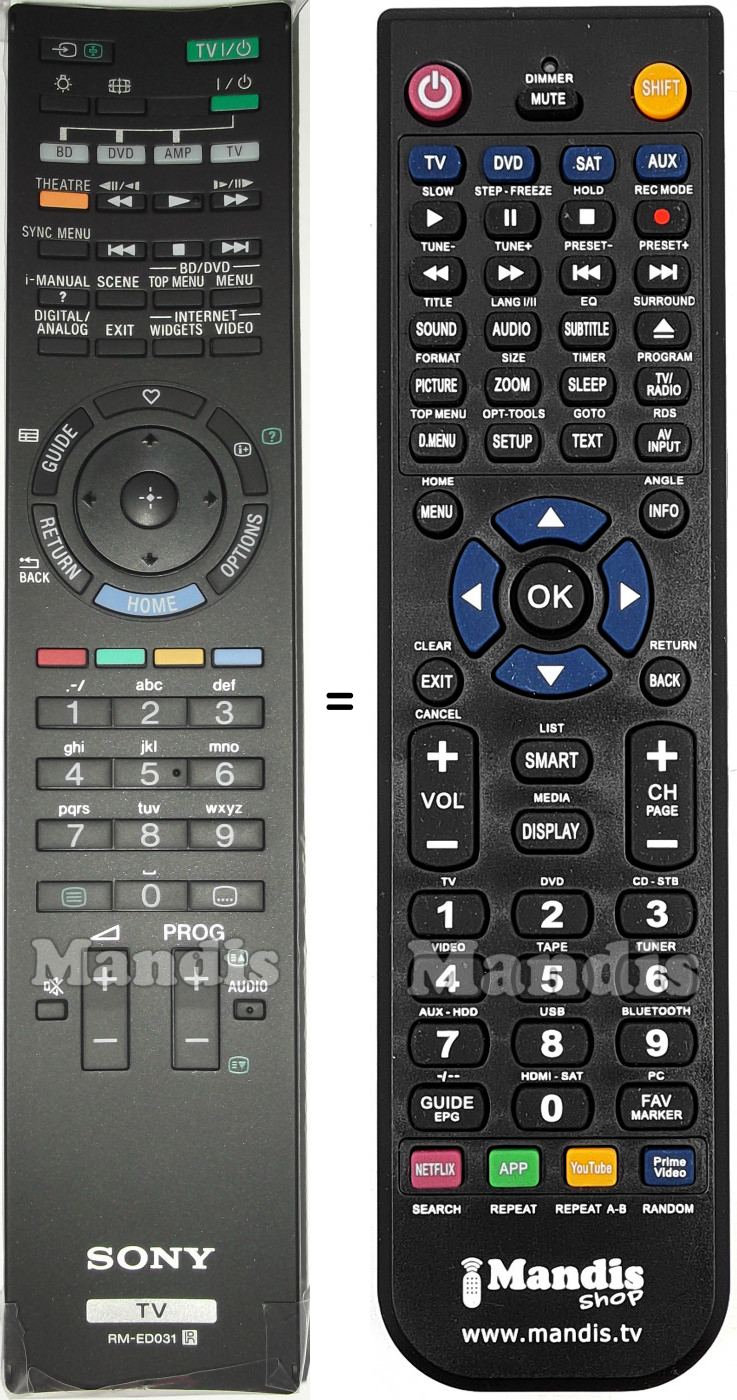Questo telecomando sostituisce completamente il tuo RM-ED 031 (148771511) e offre tutte le funzioni dell'originale.