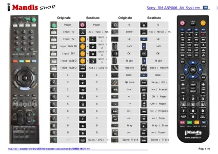 Questo telecomando sostituisce la maggior parte delle funzioni del tuo RM-ANP006 (148012711). Non è un telecomando universale, ma una copia con la maggior parte dei tasti e delle funzioni del tuo originale.