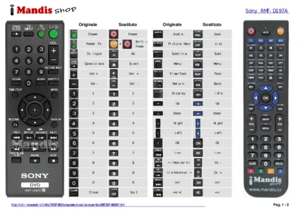 Inizio > Marche > Telecomandi Sony > Telecomando per SONY RMT-D197A (148943011)