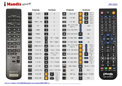 Questo telecomando sostituisce completamente il tuo RM-U265 (147363311) e offre tutte le funzioni dell'originale.