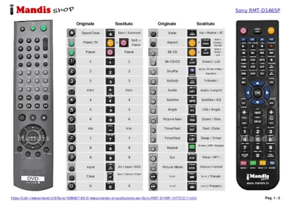 Questo telecomando sostituisce completamente il tuo RMT-D146P (147721211) e offre tutte le funzioni dell'originale.