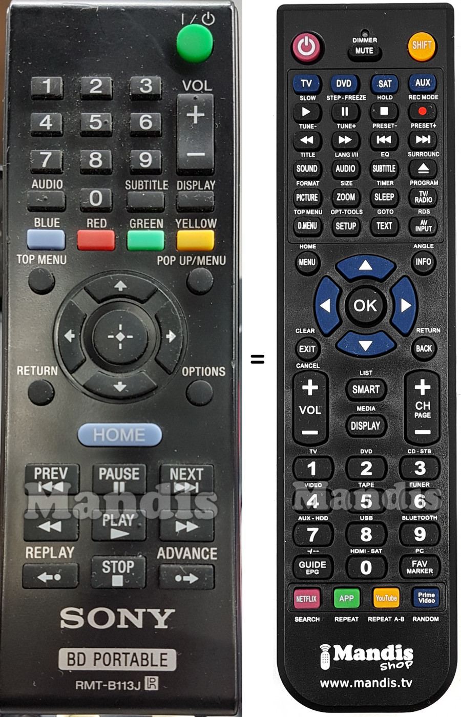 Questo telecomando sostituisce completamente il tuo RMT-B113J e offre tutte le funzioni dell'originale.