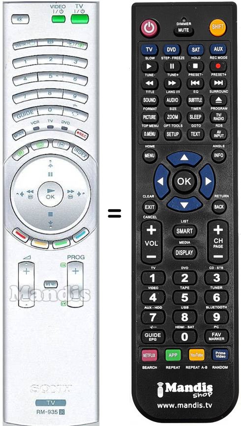 Telecomando che sostituisce l’originale RM935 (147680812) in tutte le sue funzioni.