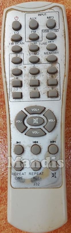 Telecomando originale J32 che serve per impianto hi-fi della marca TECSONIC. Si tratta di un modello originale di telecomando.