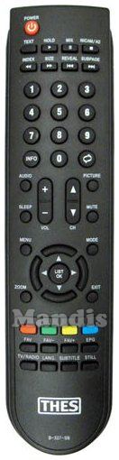 Comandament a distància original B-327-SB que serveix per televisori de la marca THES. Es tracta d'un model original de comandament a distància.