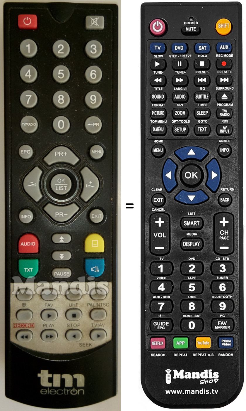 Telecomando che sostituisce l’originale TM-TDT 1019 in tutte le sue funzioni.
