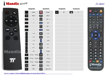 Di seguito, vi mostreremo la corrispondenza tra ciascun pulsante del telecomando originale e il pulsante che svolge la stessa funzione sul telecomando di sostituzione. In alcuni casi, potrebbe essere necessario premere il tasto SHIFT prima di premere un altro pulsante per eseguire determinate azioni. Queste funzioni aggiuntive sono spesso poco utilizzate e sono incluse per facilitare la comprensione del telecomando di sostituzione, o perché il telecomando originale ha più pulsanti rispetto al suo equivalente.