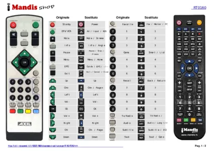 Questo telecomando sostituisce completamente il tuo RT 160 (RT0160) e offre tutte le funzioni dell'originale.