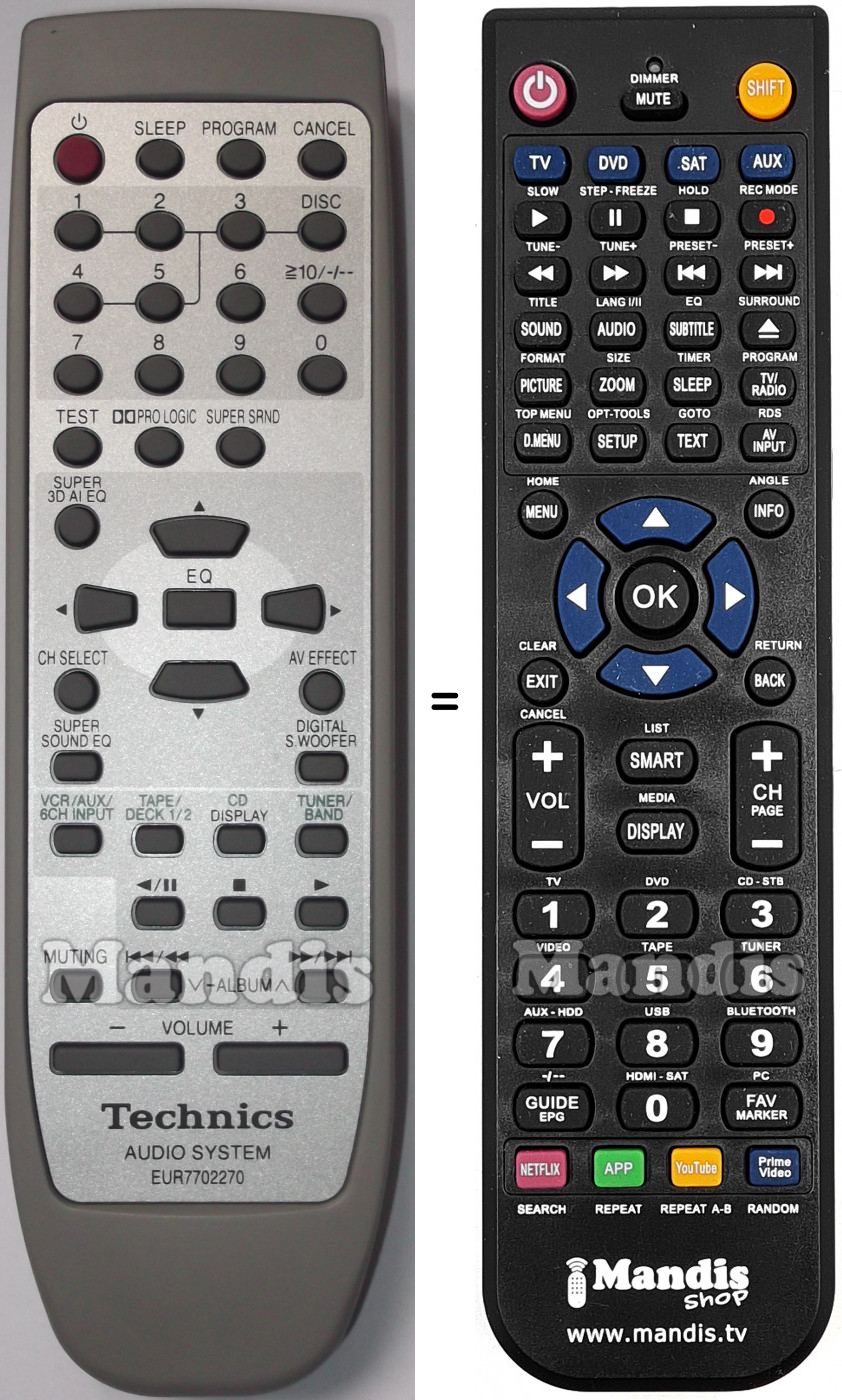 Questo telecomando sostituisce completamente il tuo EUR7702270 e offre tutte le funzioni dell'originale.