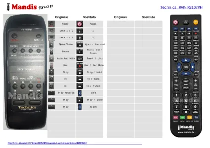 Questo telecomando sostituisce completamente il tuo RAK-RS107WH e offre tutte le funzioni dell'originale.