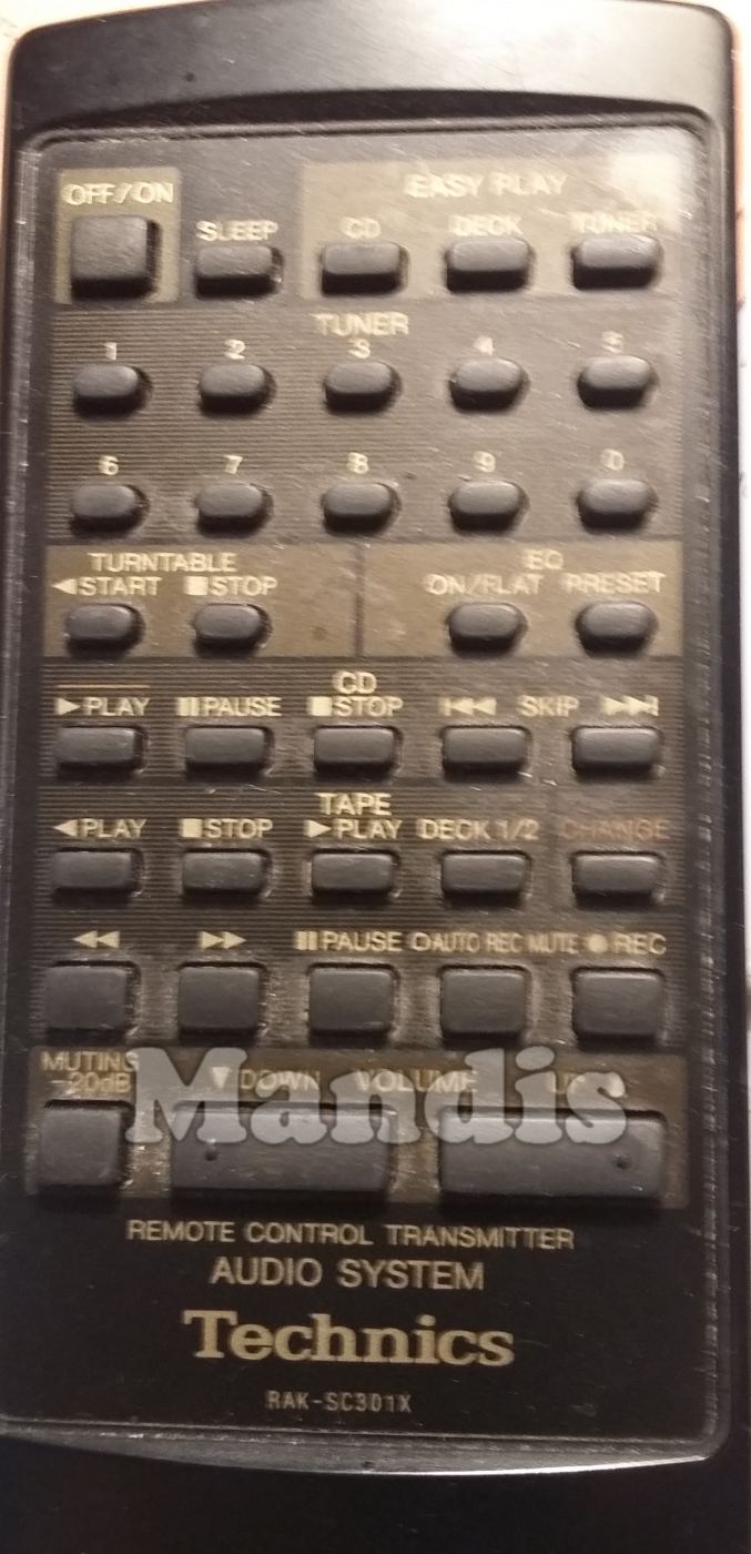 Telecomando originale RAK-SC301X della marca Technics. Si tratta di un modello originale di telecomando.