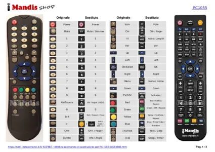 Questo telecomando sostituisce completamente il tuo RC1055 (20351504) e offre tutte le funzioni dell'originale.