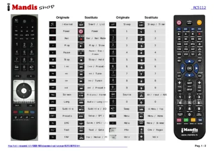 Questo telecomando sostituisce completamente il tuo RC 5112 (30071019) e offre tutte le funzioni dell'originale.