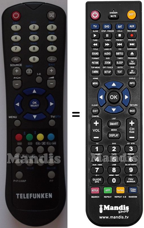 Di seguito, vi mostreremo la corrispondenza tra ciascun pulsante del telecomando originale e il pulsante che svolge la stessa funzione sul telecomando di sostituzione. In alcuni casi, potrebbe essere necessario premere il tasto SHIFT prima di premere un altro pulsante per eseguire determinate azioni. Queste funzioni aggiuntive sono spesso poco utilizzate e sono incluse per facilitare la comprensione del telecomando di sostituzione, o perché il telecomando originale ha più pulsanti rispetto al suo equivalente.