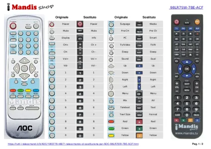 È incluso un documento per aiutarti a utilizzare facilmente il nuovo telecomando, indicando la corrispondenza dei pulsanti.