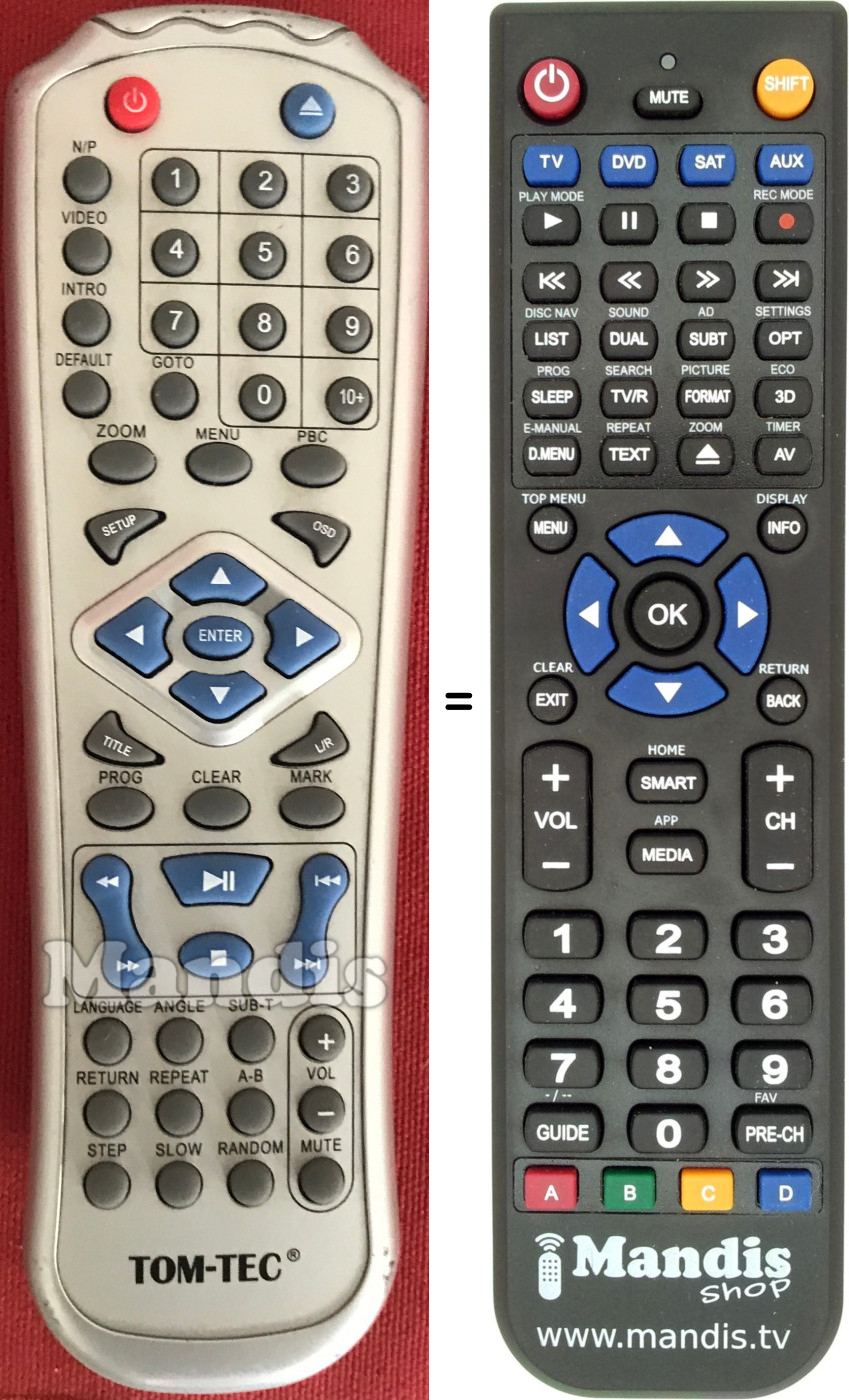 Este comando substitui completamente o seu DVD3602 e oferece todas as funções do original.
