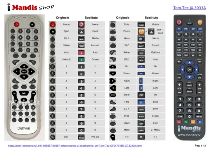 Di seguito, vi mostreremo la corrispondenza tra ciascun pulsante del telecomando originale e il pulsante che svolge la stessa funzione sul telecomando di sostituzione. In alcuni casi, potrebbe essere necessario premere il tasto SHIFT prima di premere un altro pulsante per eseguire determinate azioni. Queste funzioni aggiuntive sono spesso poco utilizzate e sono incluse per facilitare la comprensione del telecomando di sostituzione, o perché il telecomando originale ha più pulsanti rispetto al suo equivalente.