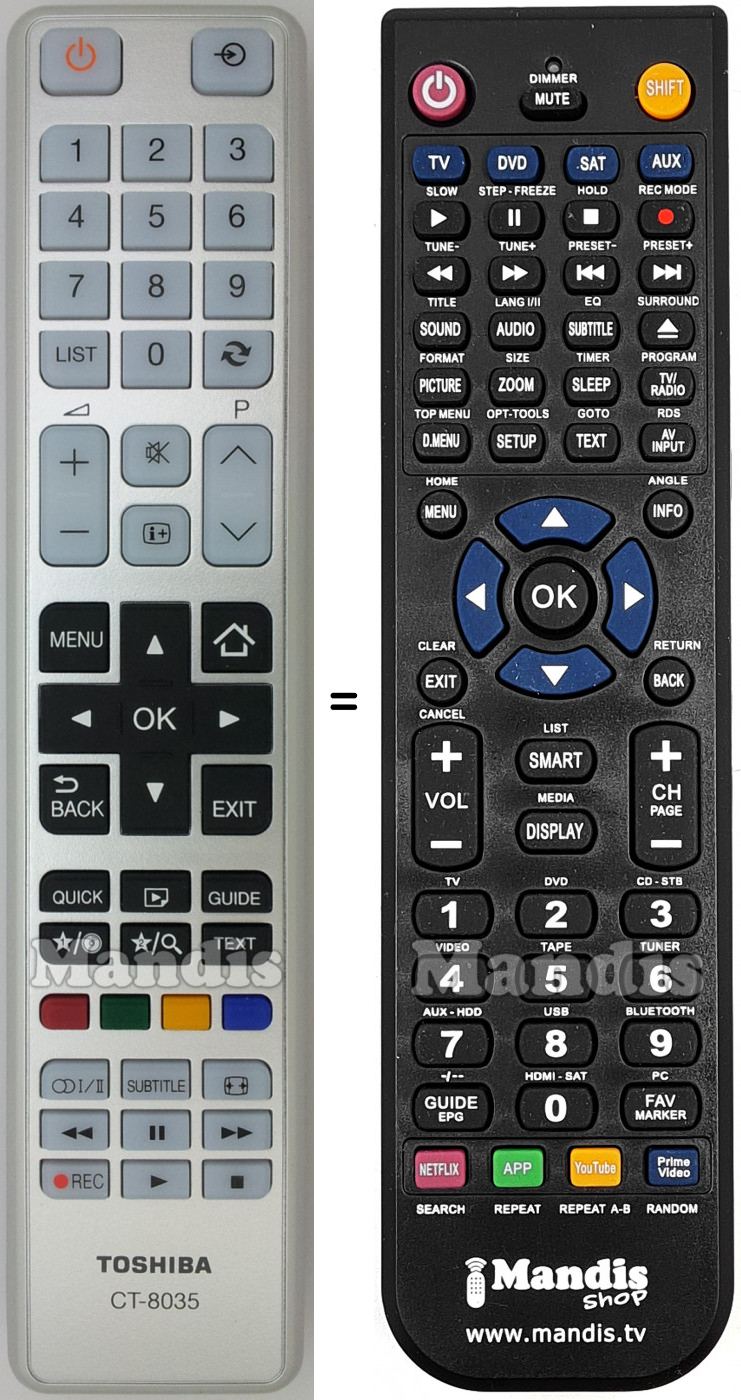 Questo telecomando sostituisce completamente il tuo CT-8035 (23385770) e offre tutte le funzioni dell'originale.
