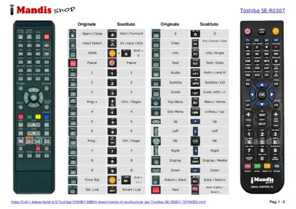 Di seguito, vi mostreremo la corrispondenza tra ciascun pulsante del telecomando originale e il pulsante che svolge la stessa funzione sul telecomando di sostituzione. In alcuni casi, potrebbe essere necessario premere il tasto SHIFT prima di premere un altro pulsante per eseguire determinate azioni. Queste funzioni aggiuntive sono spesso poco utilizzate e sono incluse per facilitare la comprensione del telecomando di sostituzione, o perché il telecomando originale ha più pulsanti rispetto al suo equivalente.