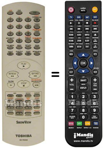 Questo telecomando sostituisce completamente il tuo SE-R0092 e offre tutte le funzioni dell'originale.