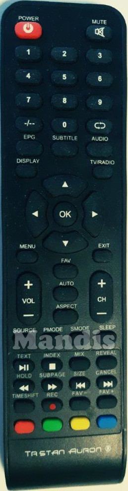 Telecomando originale TRS001 che serve per televisori della marca Trstan Auron. Si tratta di un modello originale di telecomando.