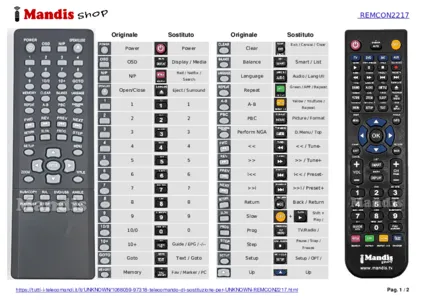 Questo telecomando sostituisce completamente il tuo REMCON2217 e offre tutte le funzioni dell'originale.