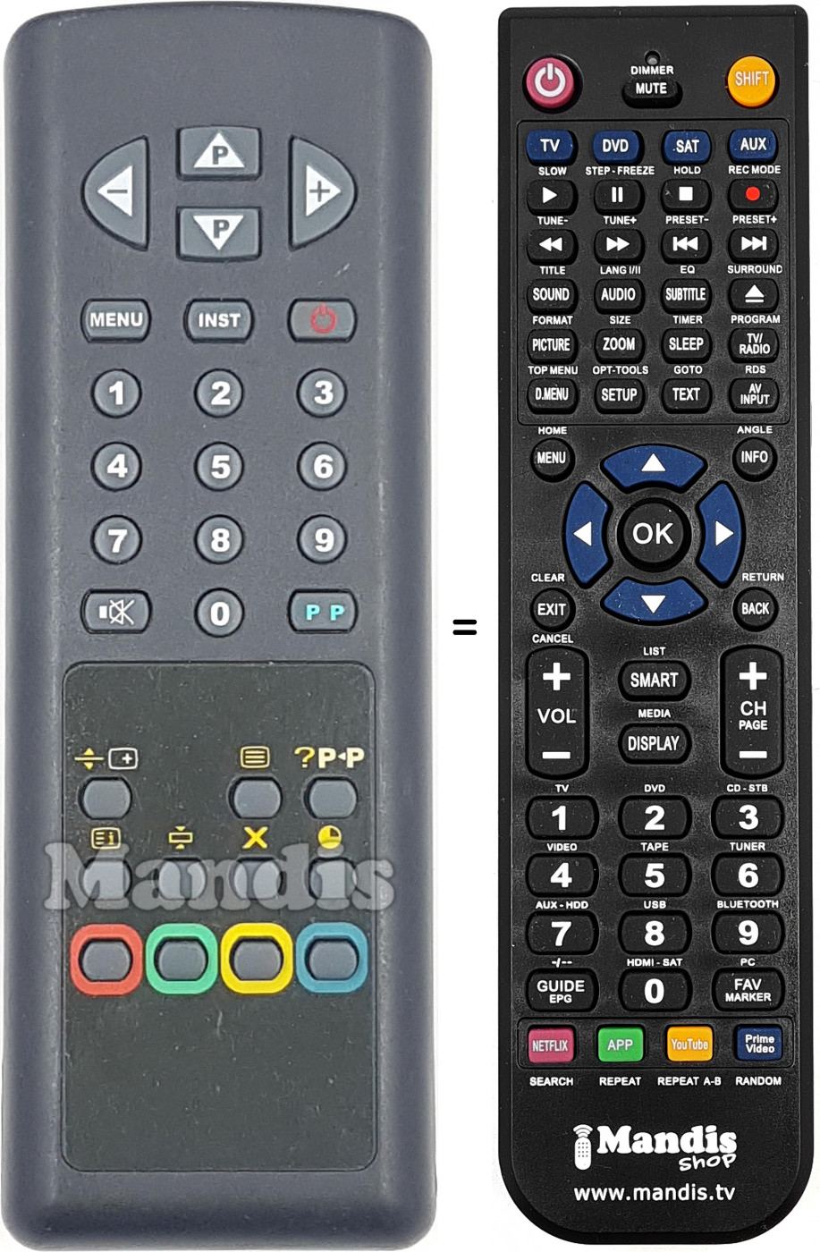 Il telecomando equivalente esegue tutte le funzioni, anche quando il controllo originale controlla vari dispositivi, nel controllo equivalente è possibile programmare diversi dispositivi (TV, DVD, SAT e AUX) in questo modo è possibile includere tutte le funzioni del telecomando originale. Se vedi il manuale dei tasti (istruzioni sul telecomando) puoi verificare che tutte le funzioni siano presenti.
