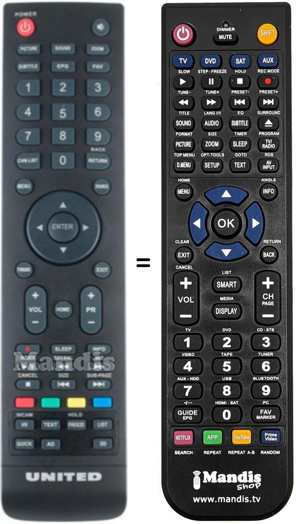 Telecomando che sostituisce l’originale in tutte le sue funzioni.