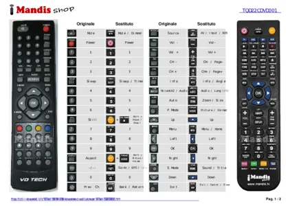 Questo telecomando sostituisce completamente il tuo TQD22CDVD001 e offre tutte le funzioni dell'originale.