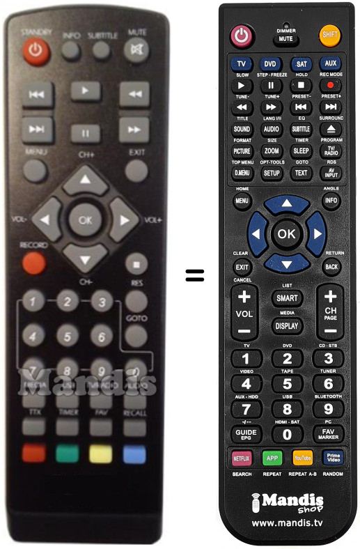 Telecomando che sostituisce l’originale in tutte le sue funzioni.