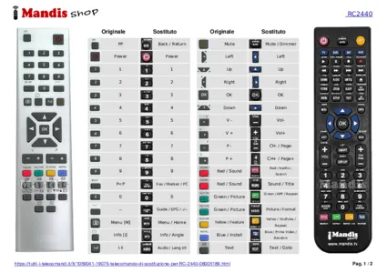 Questo telecomando sostituisce completamente il tuo RC 2440 SERISI e offre tutte le funzioni dell'originale.