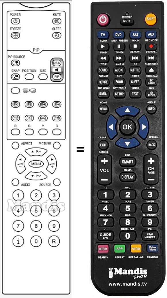 Telecomando che sostituisce l’originale in tutte le sue funzioni.