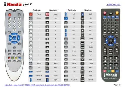 Di seguito, vi mostreremo la corrispondenza tra ciascun pulsante del telecomando originale e il pulsante che svolge la stessa funzione sul telecomando di sostituzione. In alcuni casi, potrebbe essere necessario premere il tasto SHIFT prima di premere un altro pulsante per eseguire determinate azioni. Queste funzioni aggiuntive sono spesso poco utilizzate e sono incluse per facilitare la comprensione del telecomando di sostituzione, o perché il telecomando originale ha più pulsanti rispetto al suo equivalente.