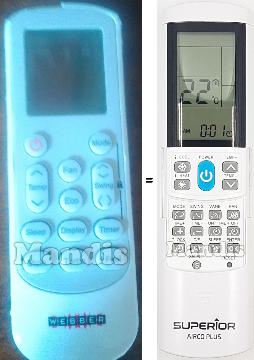 Inizio > Marche aria condizionata > Lista di telecomandi per aria condizionata Webber > Telecomando universale WEBBER Aircoplus (42530)